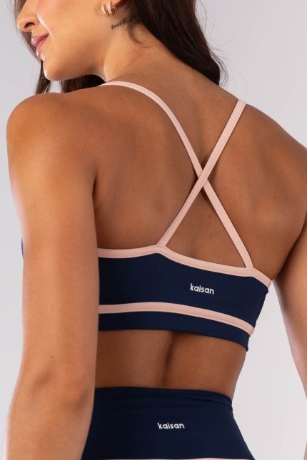 Top con Tirantes y Chapado Contrastantes (Azul Marino / Rosa Bebé)