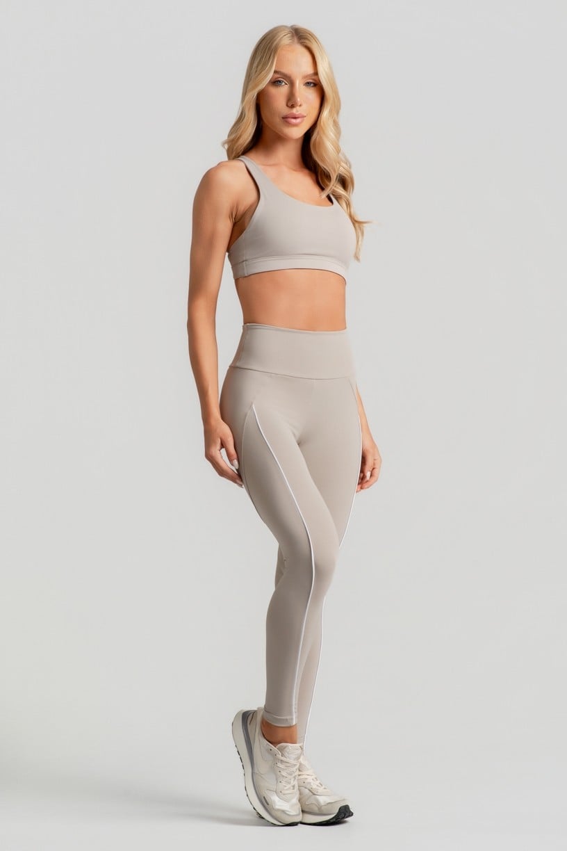 Legging con Recorte y Ribete Contrastante (Duna / Blanco)