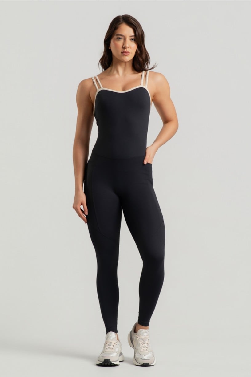 El Monoprenda con Tirantes Dobles y Escote Sinuoso es una prenda llamativa y sofisticada, ideal para mujeres que valoran el estilo y la funcionalidad en un mismo look. Combinando el negro clásico y versátil con el toque limpio del off-white en los tirantes, ofrece un estilo moderno y elegante. Lo que realmente destaca de esta prenda es su escote sinuoso con acabado en bies y los tirantes dobles contrastantes, que aseguran soporte con un toque de moda.