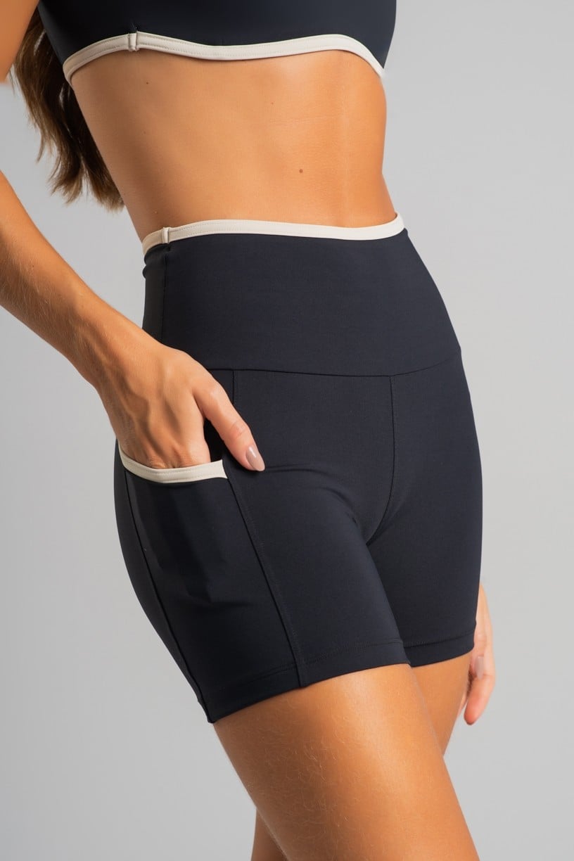 Inicio Shorts Short con bolsillos y pretina contrastante (Negro / Off-White)